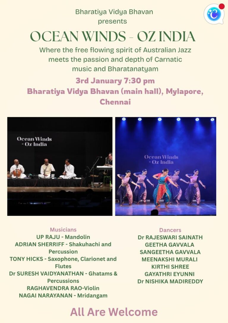 This is a rare collaboration by VNC dance school with some truly incredible musicians, blending Australian Jazz with Carnatic music and Bharatanatyam.